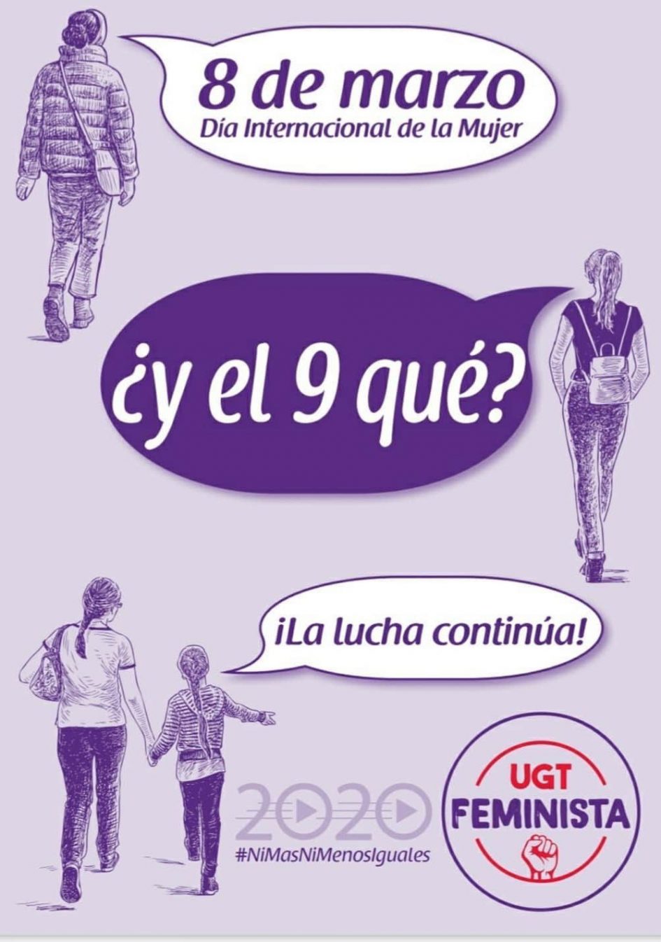 8M Día Internacional de la Mujer, ¿y el 9 qué? UGT seguirá luchando diariamente por los derechos laborales, sociales y económicos de las mujeres, hasta alcanzar una sociedad igualitaria, libre de discriminaciones por motivo de género y en la que se erradiquen las violencias machistas.